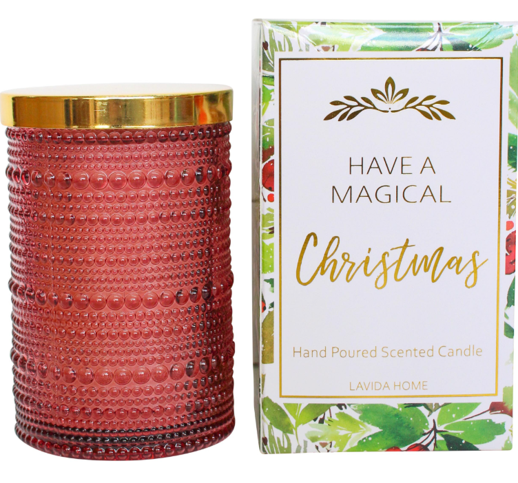 Xmas Candles are such a knockout on the shelf, especially with that festive glass and textured finish. The gold lid and 8x8x12.5cm size give it a real sense of luxury, making it a great pick for gift buyers or anyone looking to add a bit of holiday glamour to their home decor.